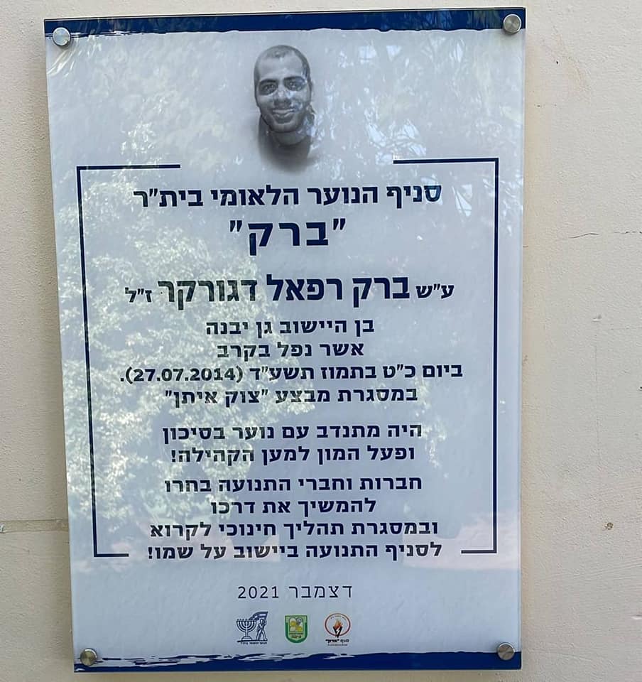 אתמול (6/1/2022) נחנך סניף תנועת הנוער הלאומי בית"ר אשר נקרא על שם ברק רפאל דגורקר ז"ל. ברק היה בן היישוב גן יבנה שפעל והתנדב רבות למען הנוער והקהילה ביישוב. בטקס המרגש נכחו בני משפחתו של ברק רפאל ז"ל, ראש המועצה דרור אהרון, חברי הנהלת התנועה ובכירים נוספים.