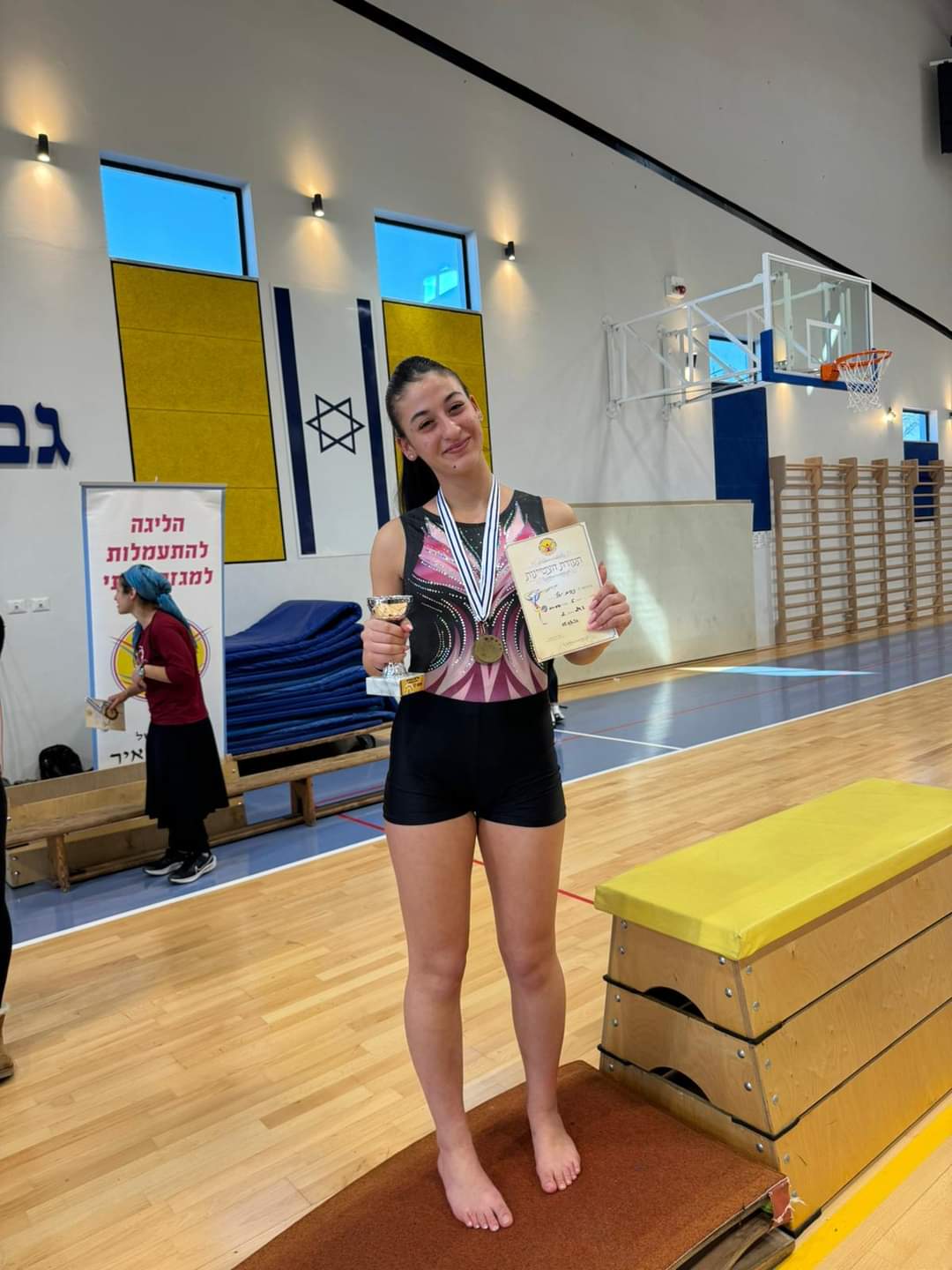 "ברכות ליהלי ניסים המוכשרת שזכתה במקום השני ובמלגה יוקרתית בסך 3000 ש"ח מטעם גבעת וושינגטון כדי לצאת לקורס הכשרת מדריכות התעמלות! כל הכבוד לכל המתעמלות, למאמנת דניאלה התעמלות קרקע ואקרובטיקה גאים.ות בכן!!" הוסיפו.
