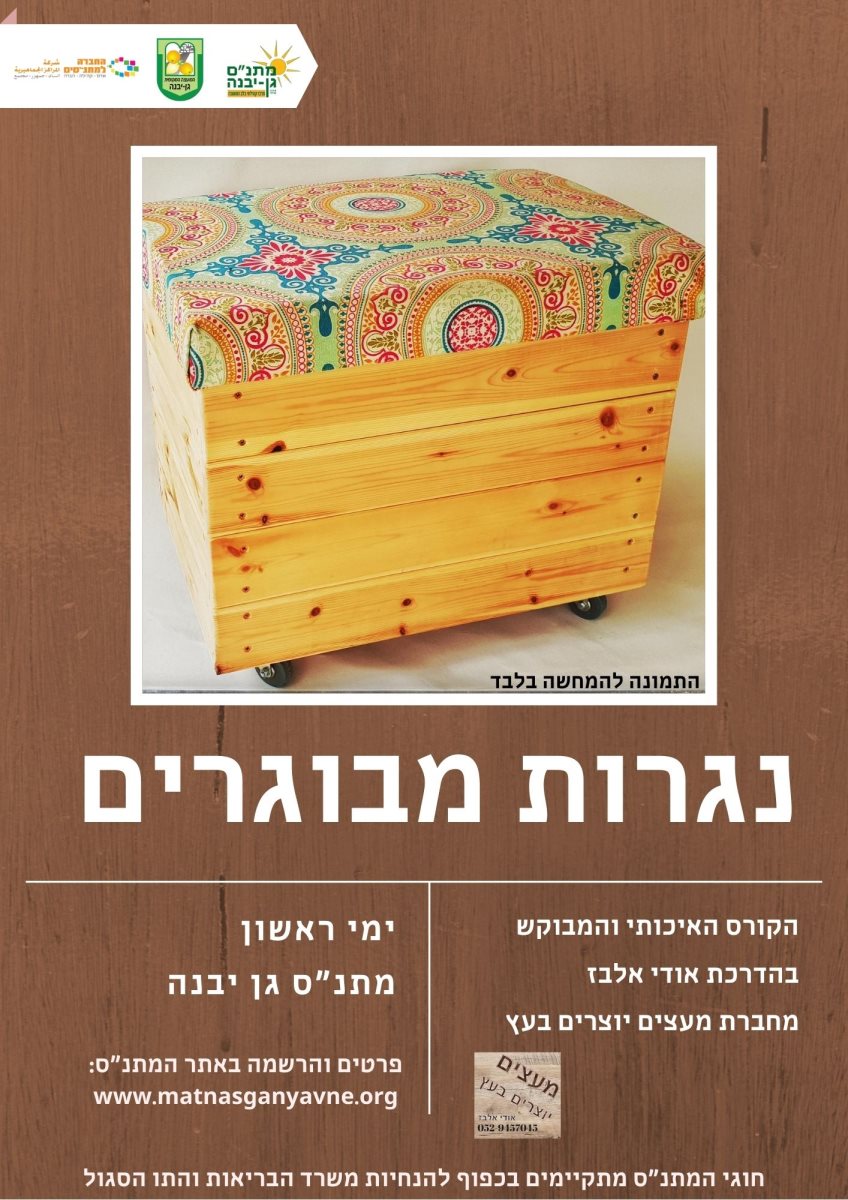 רוצים לדעת להכין מוצרים שווים מעץ לגמרי בעצמכם? מתנ"ס גן יבנה שמחים לפתוח את הקורס האהוב והמבוקש : נגרות למבוגרים בהתאם להנחיות משרד הבריאות.