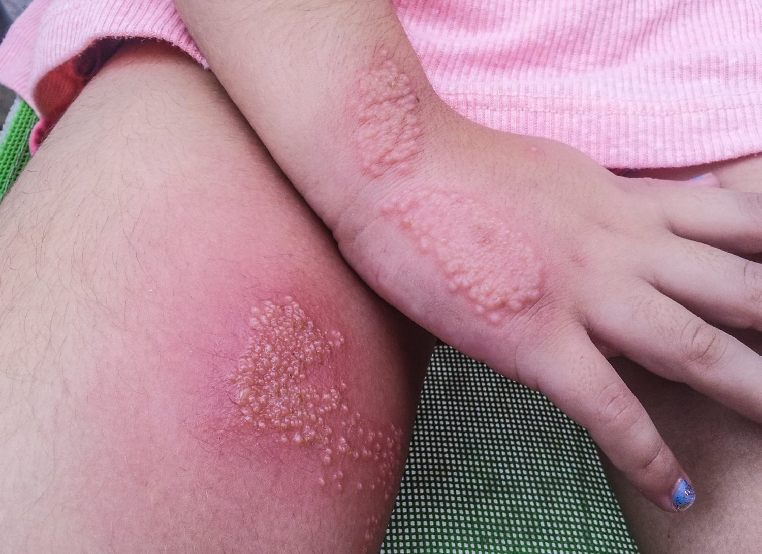 בשלב מאוחר יותר, כשהעור נקי, במקרים של צריבה קשה העור נראה כאילו נכווה ויש מקרים שבהם העור ממש מתקלף מהבשר, ובמקרים קלים, העור רק אדמומי וקצת שורף. אפשר למרוח עליו תכשירי הרגעה, דוגמת ג'ל להרגעת העור של לייף פרופשיונל, המכיל אלו-ורה, תמצית בצל, תמצית שום ו-trolamine , פניסטיל ג'ל– אנטיהיסטמין להרגעת הצריבה, קרם Trolamine ועוד.