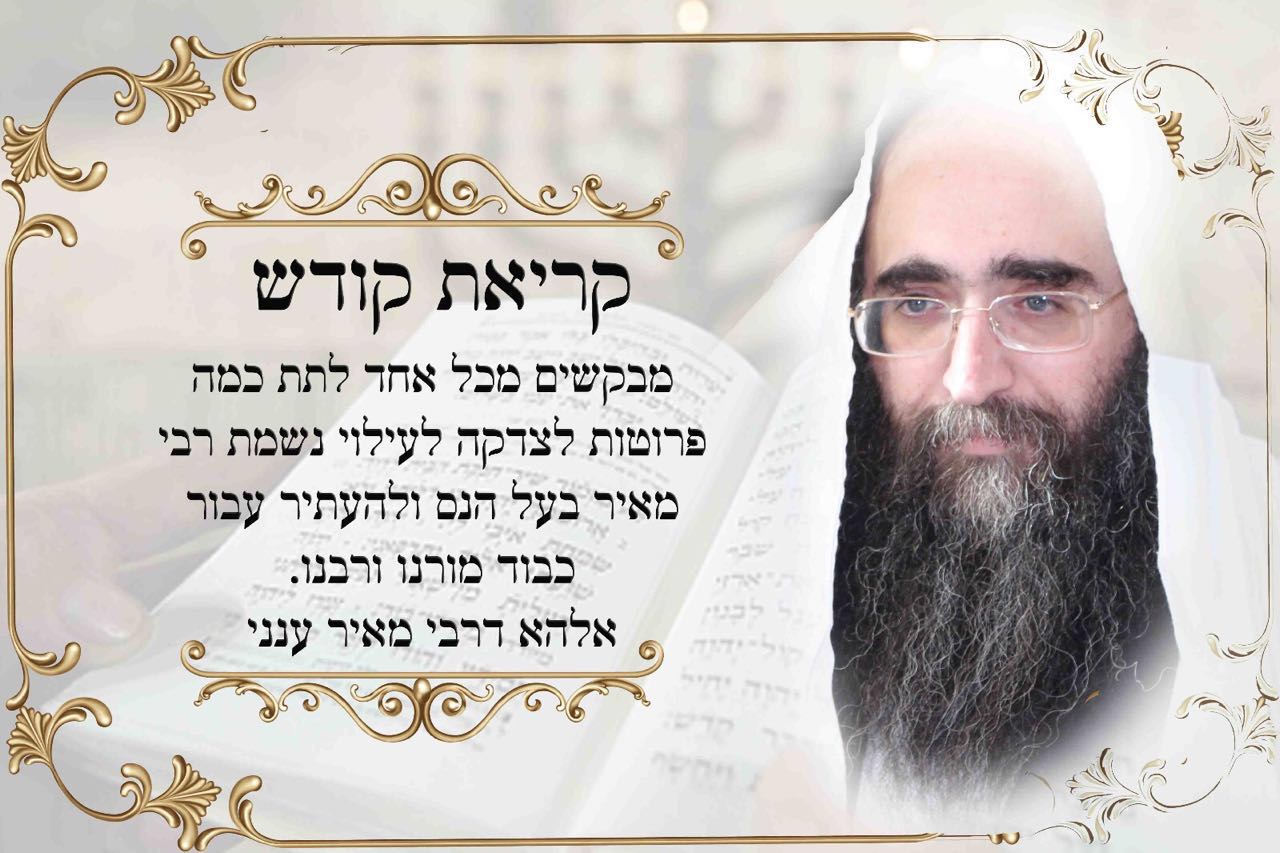 צדקה עבור נשמת רבי מאיר בעל הנס