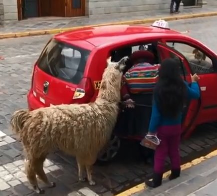 יש נהגי מוניות שלא יסכימו לעלות את הכלבלב הקטן שלכם לנסיעה, אבל כנראה שבפרו לא מתרגשים מחיות מחמד מכל הסוגים והמינים. סרטון שצולם ברחובות קוסקו בפרו על ידי תייר, הפך לויראלי, בשעה שלא מדובר בעוד חיית מחמד קטנה וחביבה, אלא באלפקה.