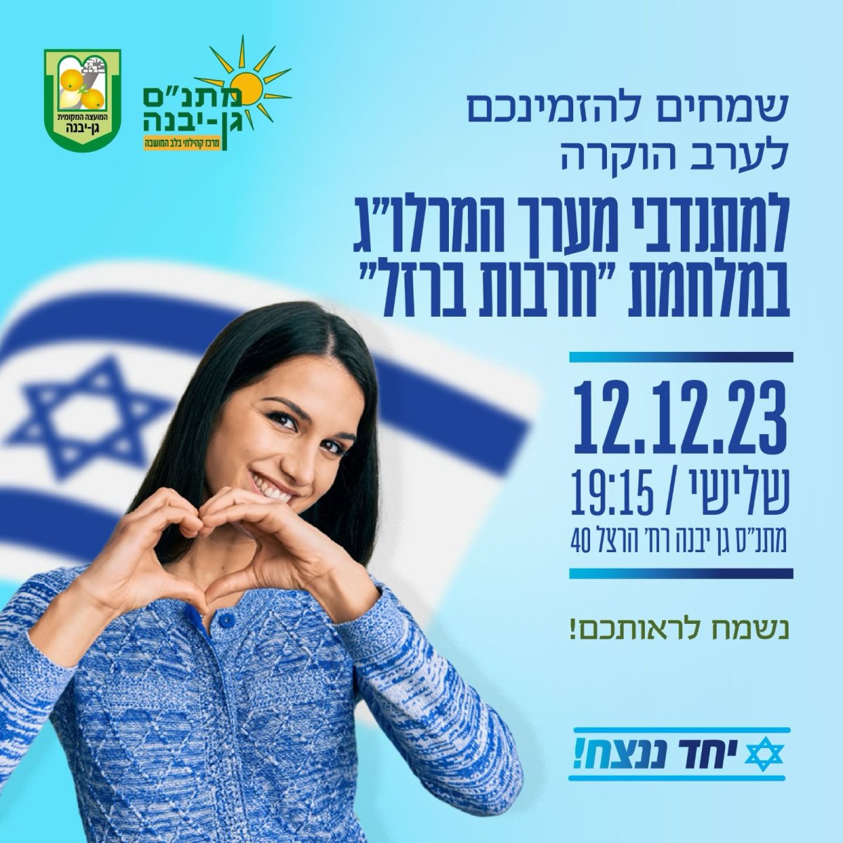 ערב הוקרה מרגש התקיים במתנ"ס למתנדבי מרלו"ג גן יבנה במלחמת חרבות ברזל