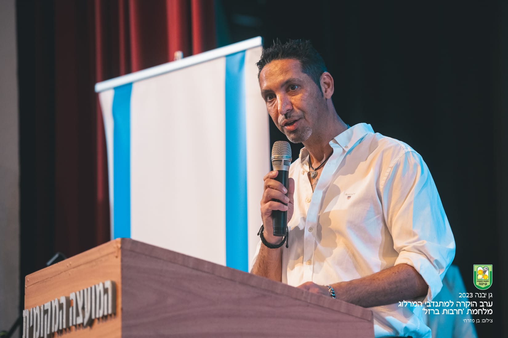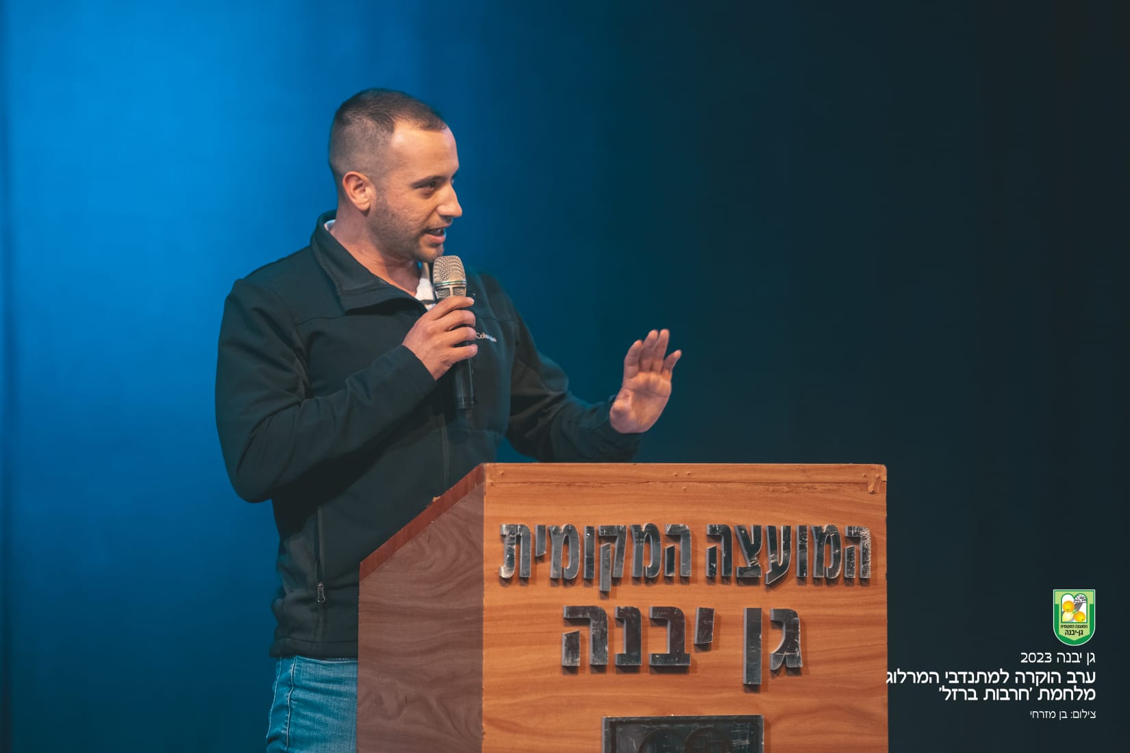 "התכנסנו השבוע באולם מתנ"ס גן יבנה לערב מרגש שכולו תודה למתנדבי המרכז הלוגיסטי לאיסוף ציוד ומזון שהוקם ביישוב במהלך מלחמת חרבות ברזל" כתב דרור אהרון.