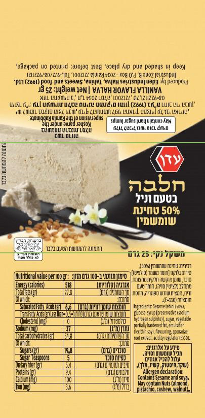 חלבה בטעם וניל 25 גרם ללא ברקוד