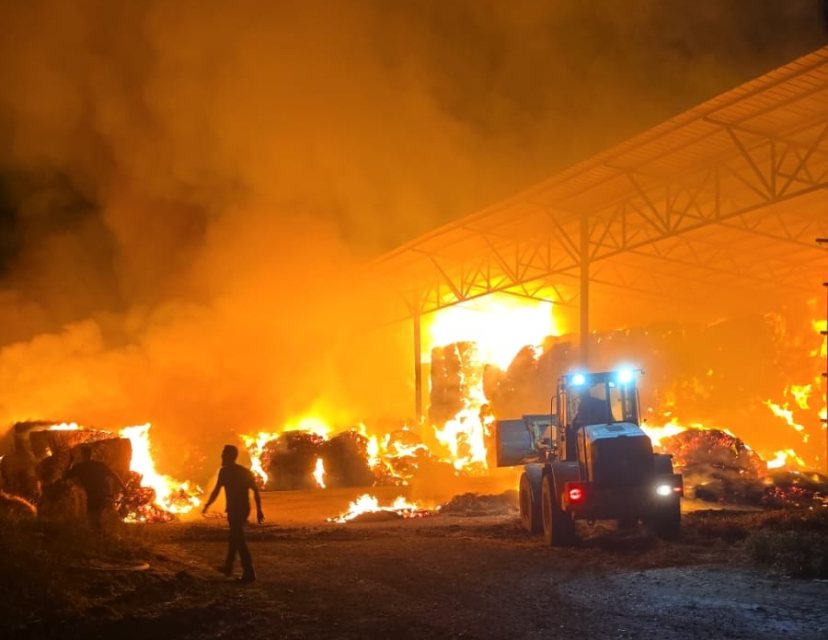 על פי דיווח ראשוני, מדובר בשריפה של האנגר ושל מתבן, כאשר מזג האוויר החם והרוחות החזקות באזור גורמים להתפשטות הלהבות.