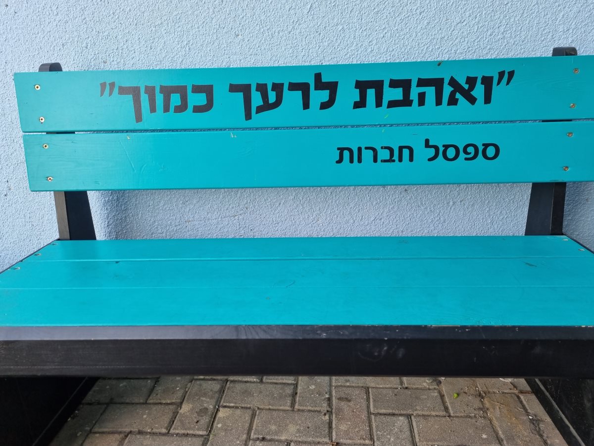 מעבר לשער, שטח הכניסה לביה"ס נקי ומטופח, נותן תחושה ביתית והרגשה של סביבה חמה ואוהבת. ניכר שזהו נושא חשוב כאן. בכניסה למבנה עומד ספסל חברות תכול. רק צבעו הזוהר, מושך לשבת עליו, גם אם ללא מטרה.