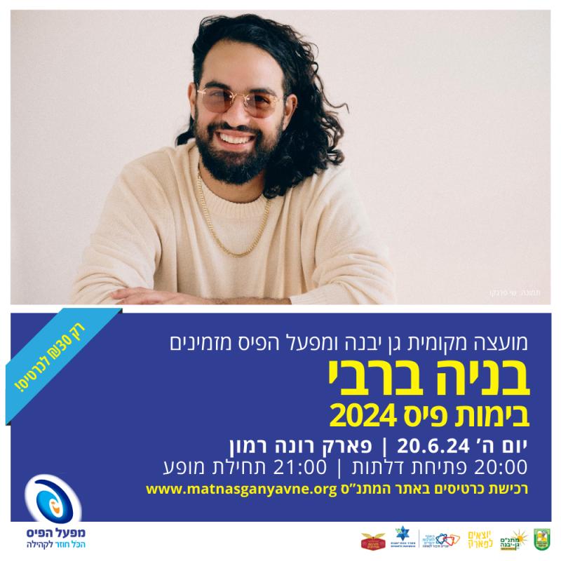בניה ברבי מגיע לגן יבנה כחלק מסדרת המופעים 'יוצאים לפארק' בגן יבנה