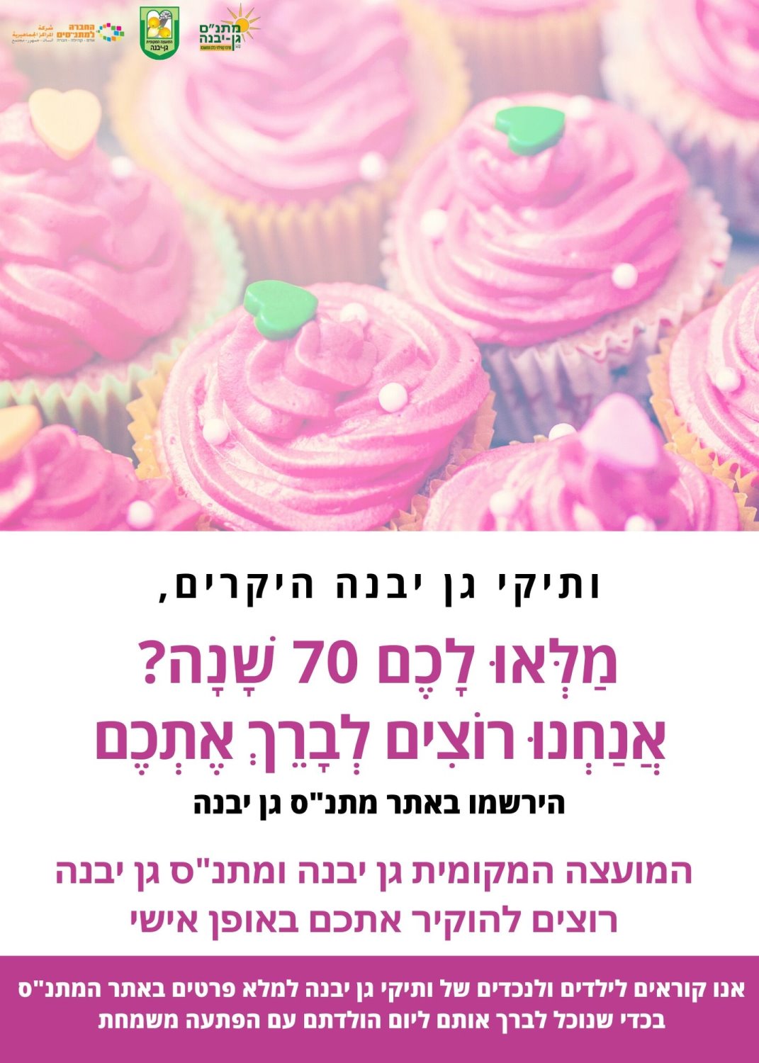 מיזם חדש עושה כבוד ובצדק לוותיקי היישוב. במועצה המקומית גן יבנה ובמתנ"ס גן יבנה חושבים שמגיעה לבני 70 ומעלה ברכה מיוחדת ומפתיעה במיוחד בתקופה זו. היכנסו ללינק של אתר המתנ"ס, הירשמו וקבלו הפתעה מרגשת ליום ההולדת.