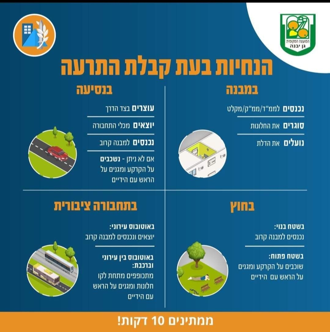 ראש מועצת גן יבנה, דרור אהרון, פרסם את פרטי הערכת מצב מספר 11 ליישוב, ובתוך כך קורא לתושבים לשמור על הוראות פיקוד העורף
