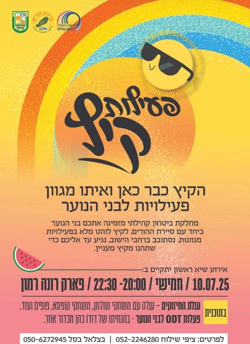 פעילויות הקיץ של גן בינה ובני הנוער – קיץ 2025
