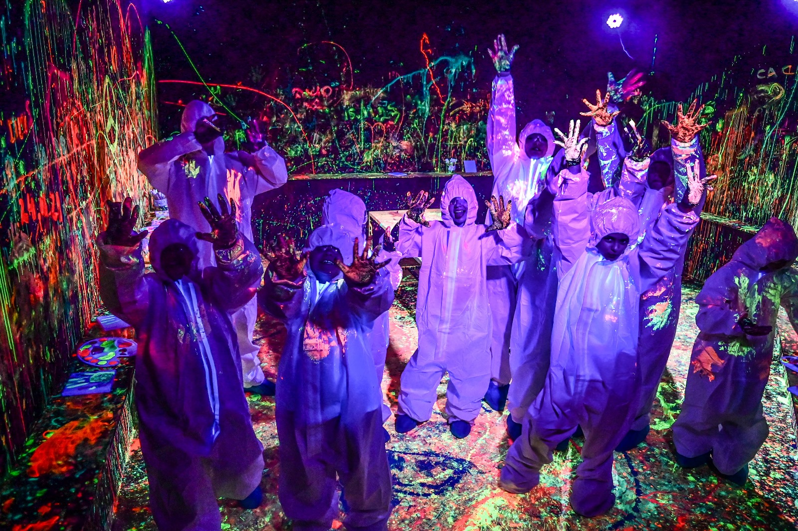 חדר הצבע (Splatter Room) לוקח את חוויית היצירה לקצה. החדר חשוך ומואר בתאורת אולטרה סגול, המשתתפים לובשים סרבלים לבנים זוהרים ומקבלים צבעי אולטרה, קנבס ומכחולים. אחרי שכל אחד מצייר את "העולם שהוא היה רוצה לחיות בו" מתחילה "מסיבת שיגעון" מוזיקה, צבעים שמתעופפים באוויר, כתמי צבע על הקירות, הרצפה והסרבלים, והרבה צחוק. את הקנבס האישי לוקחים הביתה למזכרת. "זה שילוב של יצירה, צילום וצחוק בלתי פוסק", מספרים במקום. "יוצאים משם צבעוניים מבחוץ ומאושרים מבפנים".