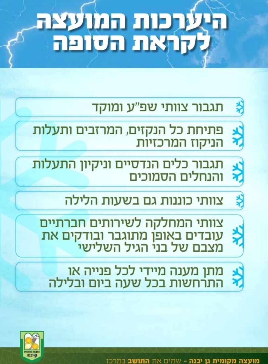 המועצה המקומית גן יבנה מתכוננת לסופה "אלפיס"