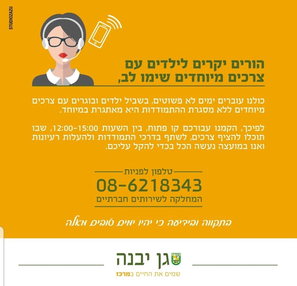 המחלקה לשירותים חברתיים במועצה המקומית גן יבנה פתחה קו פתוח להורי ילדים עם צרכים מיוחדים