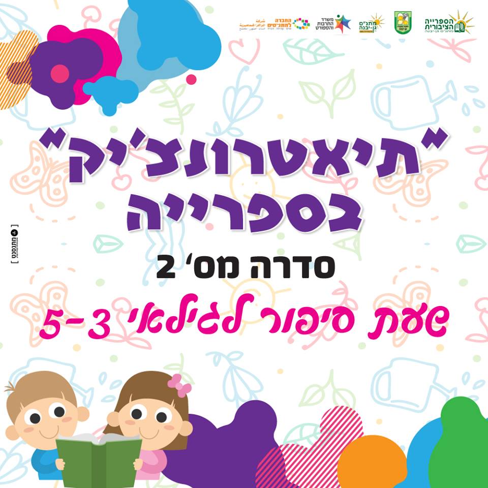 הסדרה השניה של תאטרונצ'יק בספריה תתקיים בין התאריכים 18/1-8/4/2019 בימי ב' בשעה 17:30. מספר המקומות מוגבל. מחיר מנוי לסדרה בת 6 הצגות 150 ש"ח. עלות כרטיס בודד להצגה 30 ש"ח מותנה במקום פנוי.