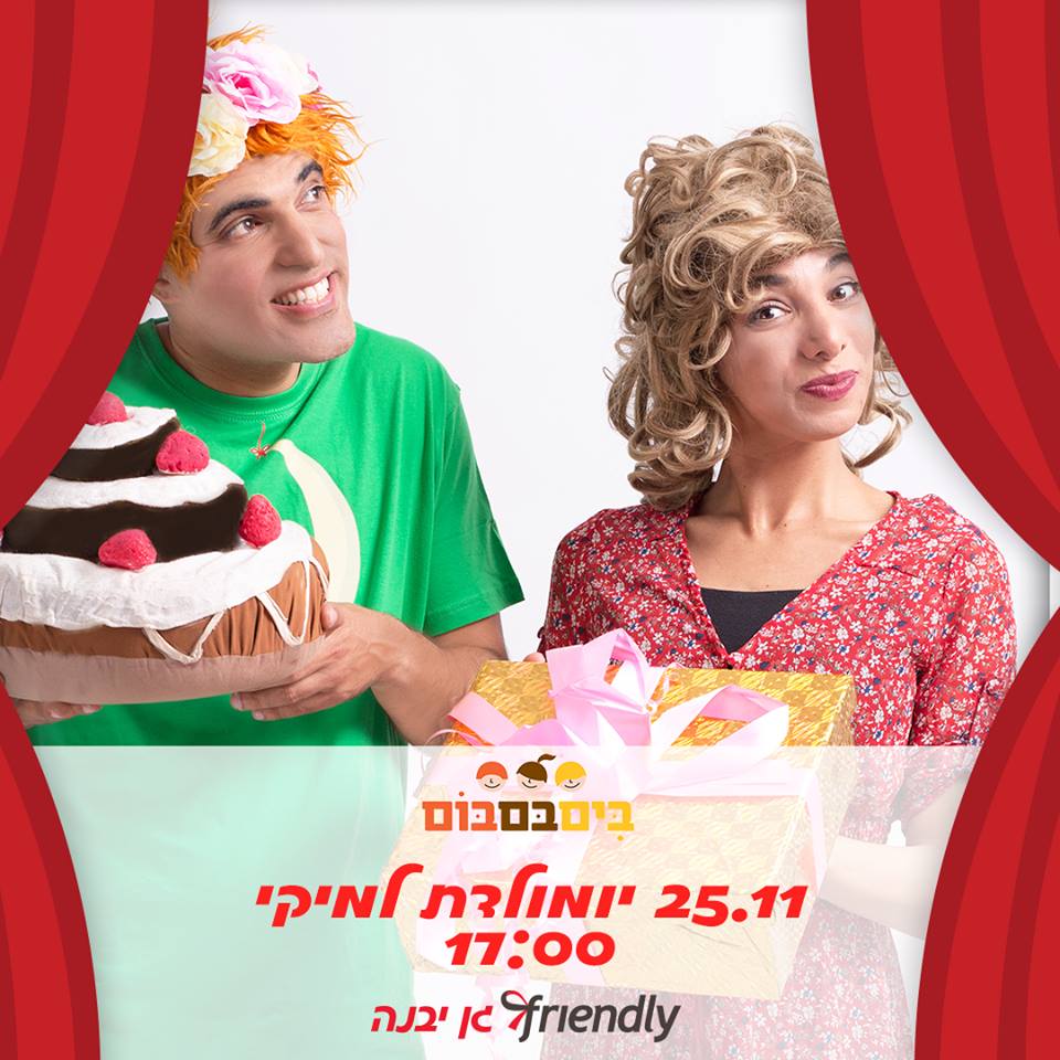 ההצגה יום הולדת למיקי. היום 25/11 בשעה 17:00 ברחבה המרכזית ליד לנדוור