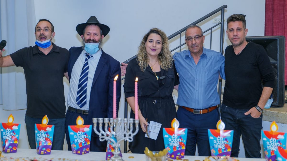בתמונה: יוסי יפרח, ראש המועצה דרור אהרון, ספיר הרוש, הרב שניאור קורנט וניקי מנהל פנימית בית אפל