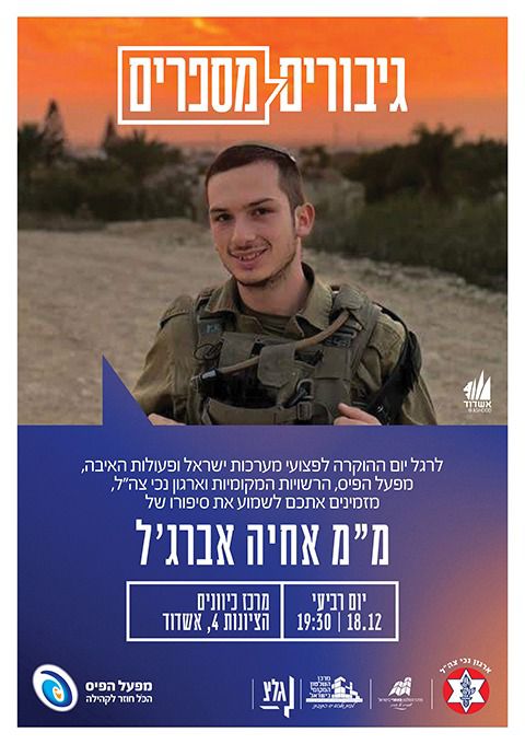גיבורים אשדודים מספרים: ערב של גבורה והשראה באשדוד לרגל יום ההוקרה לפצועי מערכות ישראל, בואו לשמוע את סיפוריהם האישיים והמרגשים של גיבורי ישראל ולקחת חלק במפגש מעורר השראה, שמזכיר לכולנו את עוצמת הרוח הישראלית – חזקה, מאוחדת ומלאת תושייה.