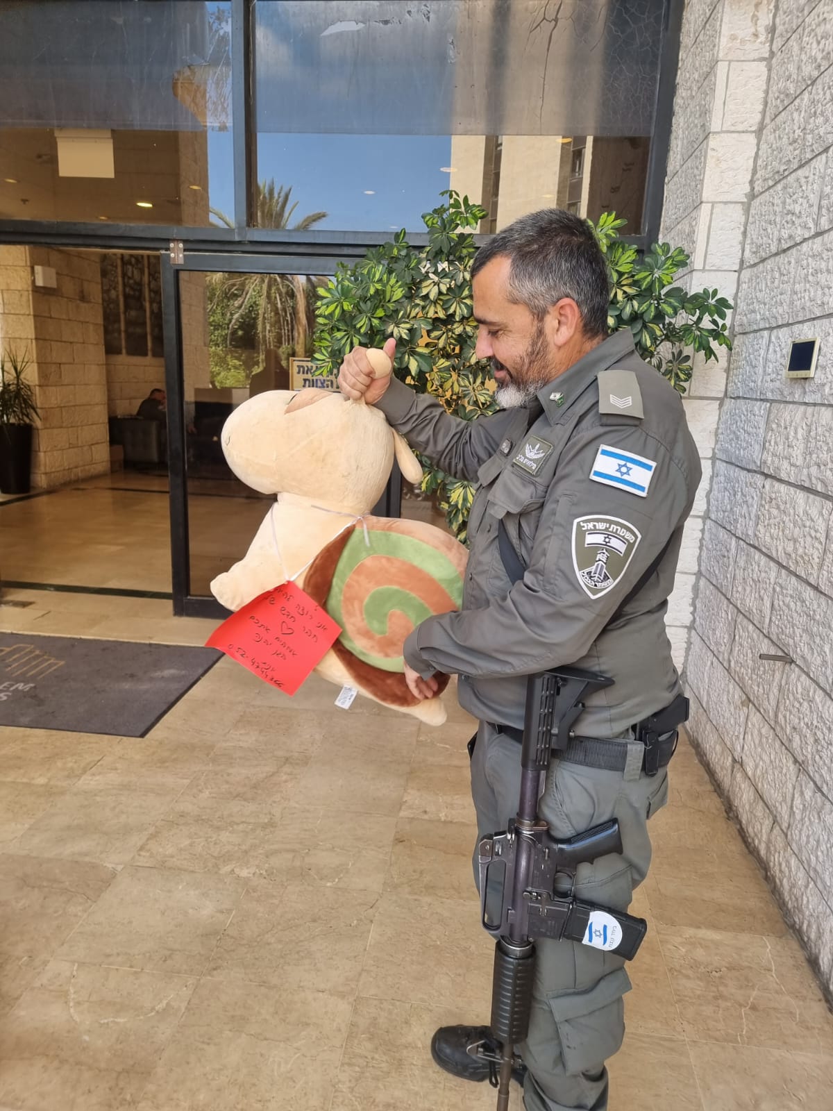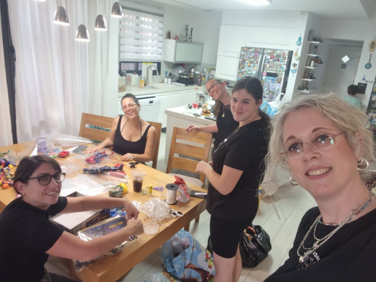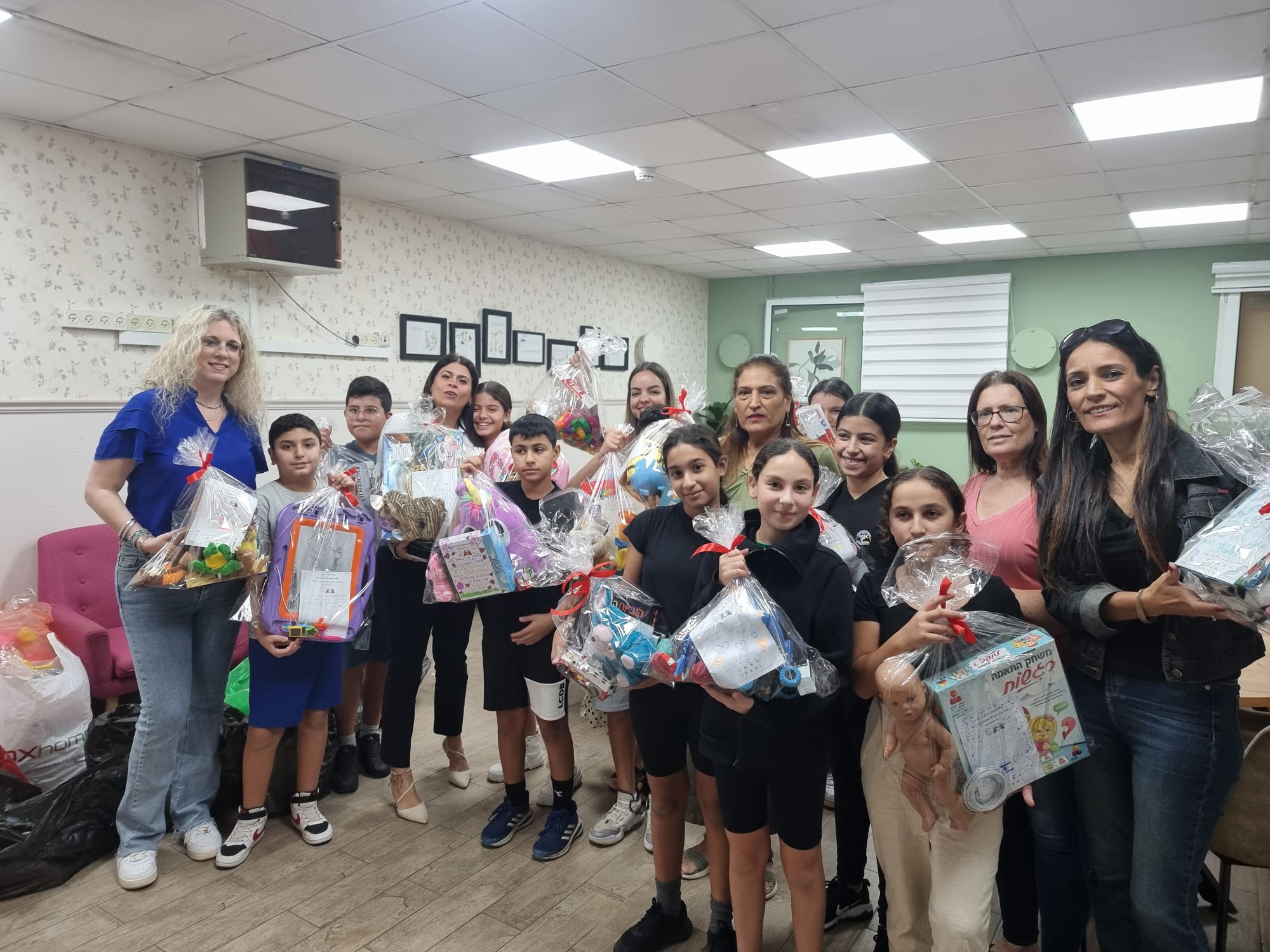 "במהלך התק' שיתפנו את בי'ס בן גוריון, בו ילדי צוות החמ''ל לומדים, בפרויקט התרמה, הכנת מארזים עם תלמידי ביה'ס, הכנת ברכות של הילדים והצמדה לתרומות שהביאו. גם את המארזים האלו חילקנו. הבית התמלא כל יום בצעצועים והתרוקן, וחוזר חלילה. בנוסף, במהלך התק' קיבלנו תרומה מסורגת בשם שירי פאר שהכינה בובות דאגה וצירפנו אותן למארזים.