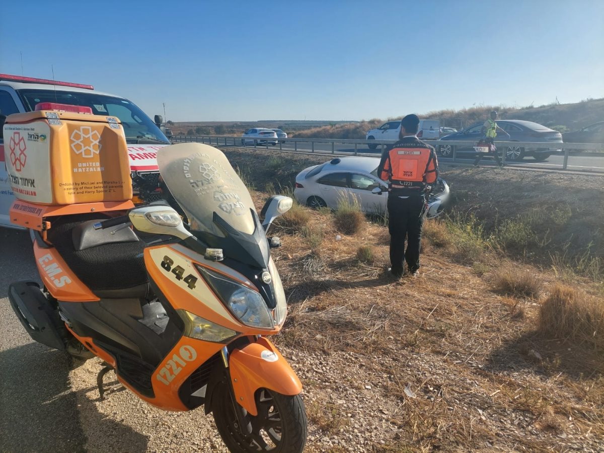 צוותי הרפואה של איחוד הצלה העניקו סיוע רפואי ראשוני לפצוע בינוני כתוצאה מתאונה בכביש 6 סמוך למחלף קרית גת