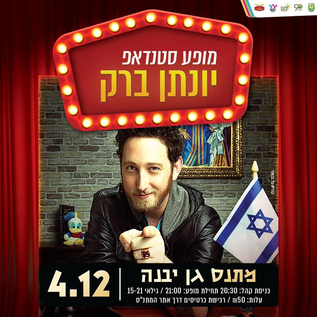 בואו לצחוק עם יונתן ברק במופע מיוחד לבני הנוער בגן יבנה מוצ"ש, 20:30