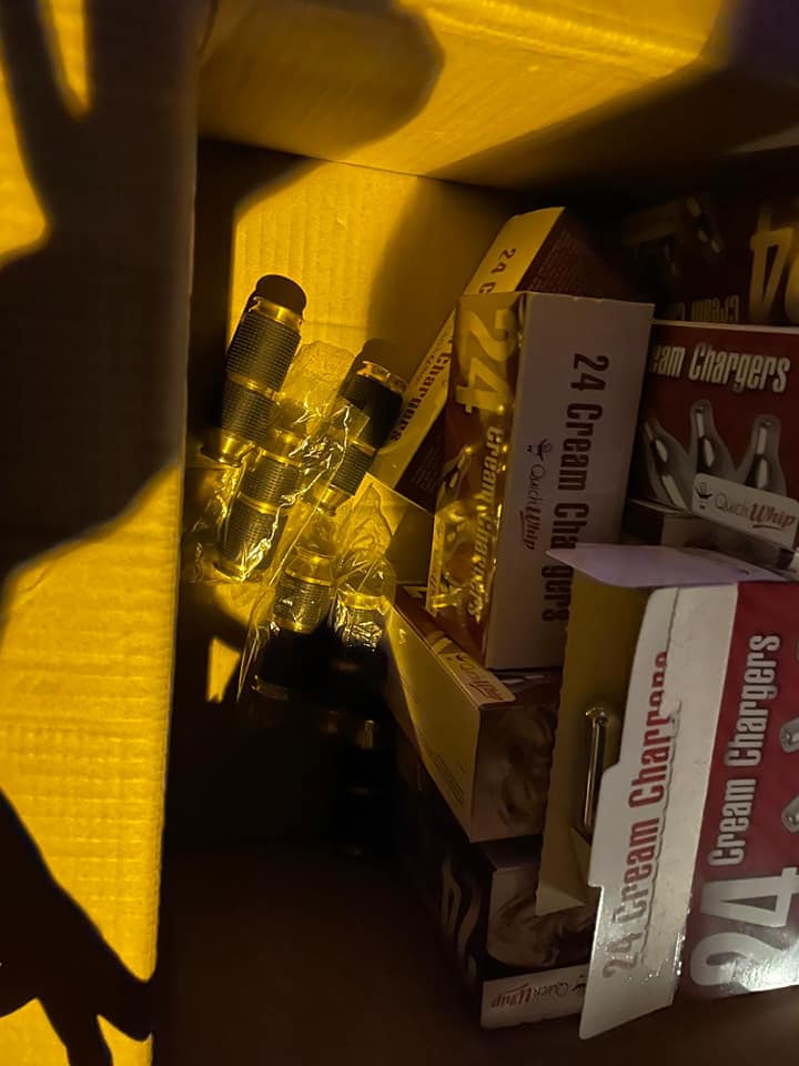 ביום שישי האחרון 11/6/2021 עצרה משטרת ישראל מספר בני מיעוטים מהפזורה כשברשותם ציוד שנגנב מאחר הבתים בגן יבנה. הם הובאו להארכת מעצר. ביום חמישי בלילה, עצר השיטור העירוני בגן יבנה צעירים שמכרו גז צחוק לקטינים ביישוב. בתמונה: מיכלי גז צחוק שנתפסו בליל חמישי ביישוב