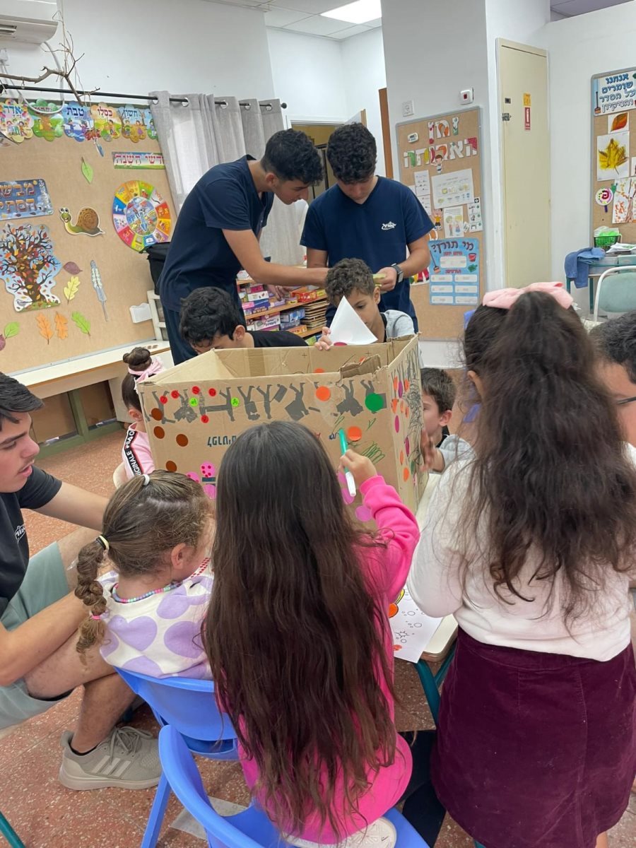 באחד מהמפגשים הילדים הכינו תיבת רגשות ולתוכה הכניסו חפצים שהם אוהבים ומרגיעים אותם. אני רוצה להודות לשרונית ולילדי כיתה י 4 על היוזמה המבורכת , ילדי הגנים וצוותי החינוך נהנו מאוד.