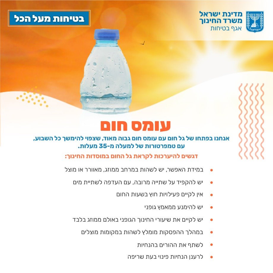 ראש מועצת גן יבנה בקריאה לתושבים בעקבות עומס החום הקיצוני השורר באזור