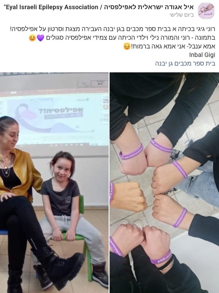 "התרגשתי אוד לספר לילדים שיש לי אפילפסיה יחד עם המורה שלי" מספרת לנו רוני הקטנה וממשיכה בחיוך מבוייש, "היא (המורה) סיפרה יותר כי מאוד התרגשתי. הראינו לילדים מצגת וסרטון וחילקתי לחברים צמיד סגול."