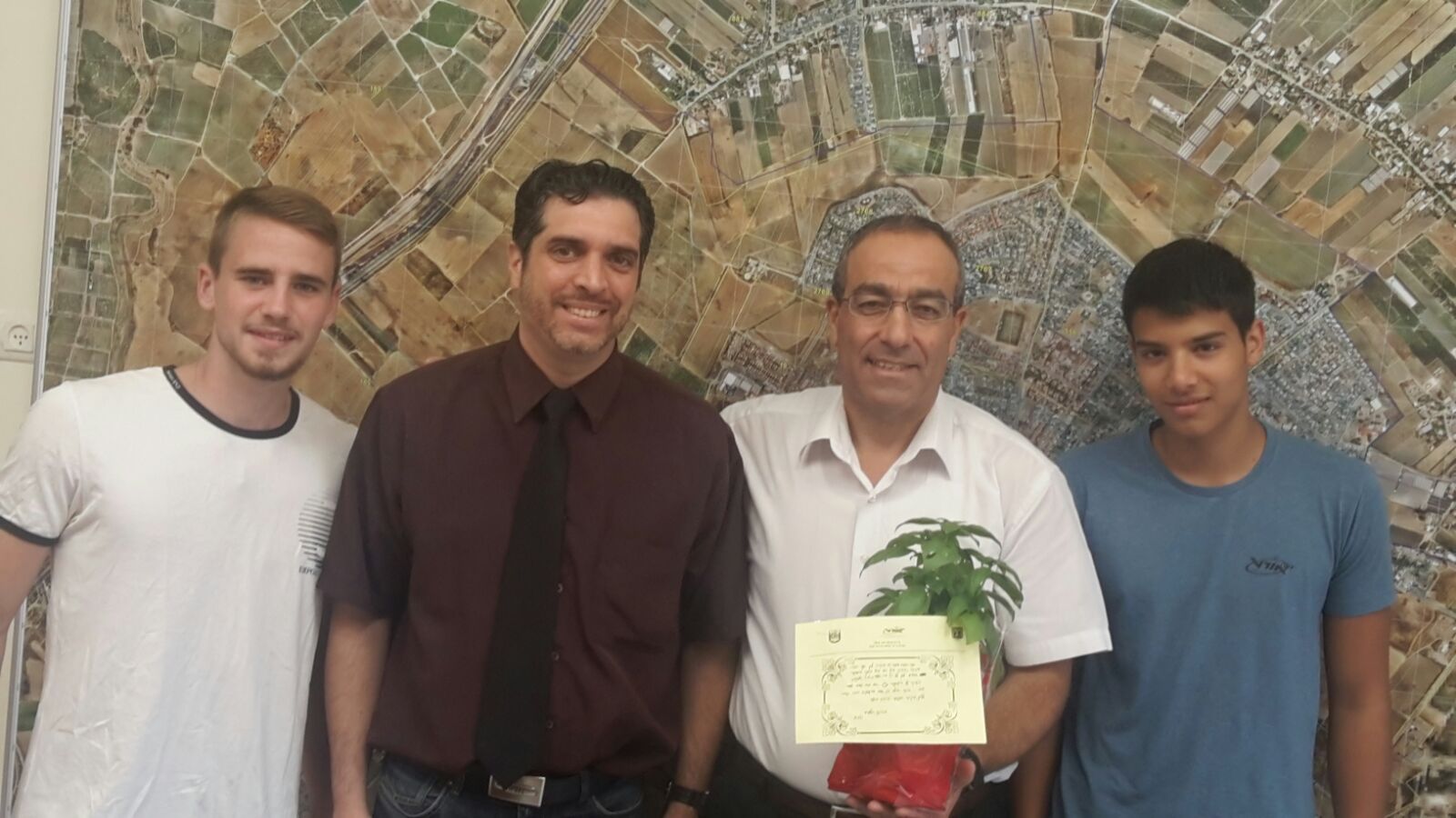 מחנך הכיתה ושניים מתלמידיו, דניאל ציפין ושחר טלקר, ביקרו בבניין המועצה ונועדו עם ראש המועצה מר דרור אהרון והעניקו גם לו עציץ תבלין וברכה מיוחדת. ראש המועצה התרגש מהמחווה היפה, הודה לתלמידים ולמחנכם ואיחל להם שנה טובה והצלחה.