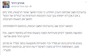 ומן העבר השני ראש המועצה דרור אהרון מודיע על כך :