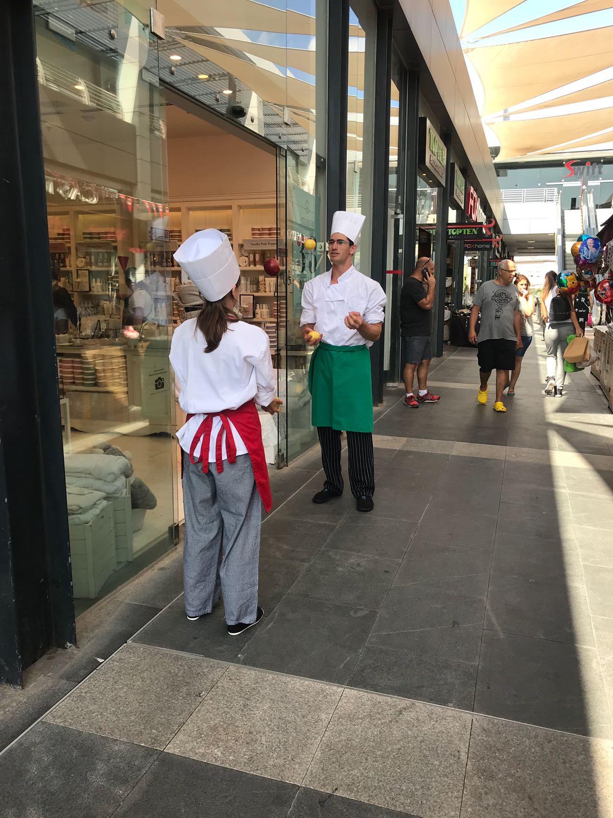 למבקרים הרבים חיכו דוכני אוכל: מאכלי עדות, מאכלים איטלקיים, מאפים, לחמים, דוכני אומנויות ומתנות רבים וזוג להטוטנים הלבושים כשני שפים שהסתובבו בין המבקרים, שיעשעו אותם והוסיפו לאווירה השמחה והמיוחדת השפים הלהטוטנים