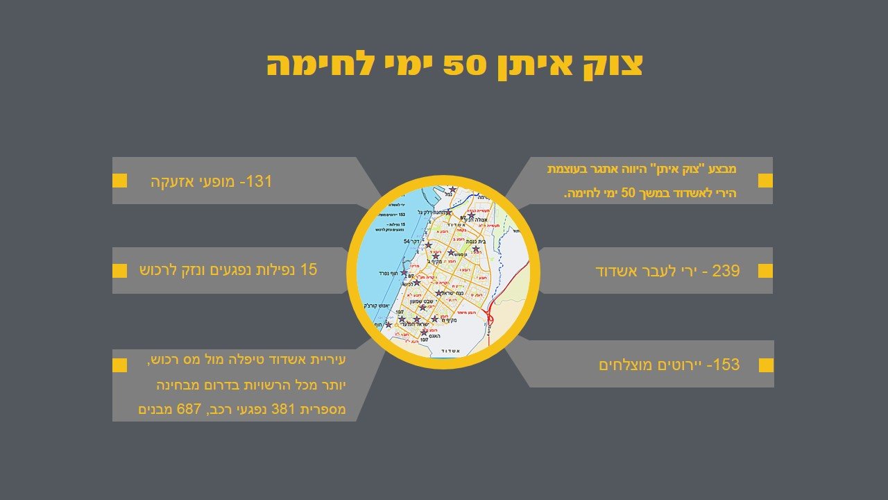 131 אזעקות נשמעו בעיר , 239 טילים נורו לעבר אשדוד, 153 יירוטים בצעה כיפת ברזל ו-15 טילים הצליחו לחדור את הכיפה ונפלו בלב ליבה של אשדוד.