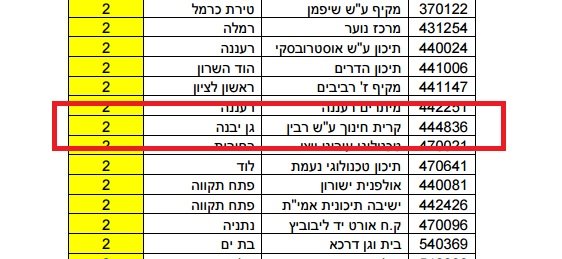 79 בתי ספר קיבלו את הדירוג הגבוה ביותר (1), בהם: עירוני א' בחיפה, אחד העם בפתח תקווה, עירוני א' בתל אביב, עירוני ו' בבאר שבע, אולפנת תהילה בירושלים, ישיבת נוה שמואל באפרת ועוד.. באשדוד השכנה זכו מקיף ד', מקיף ט' ומקיף י'.