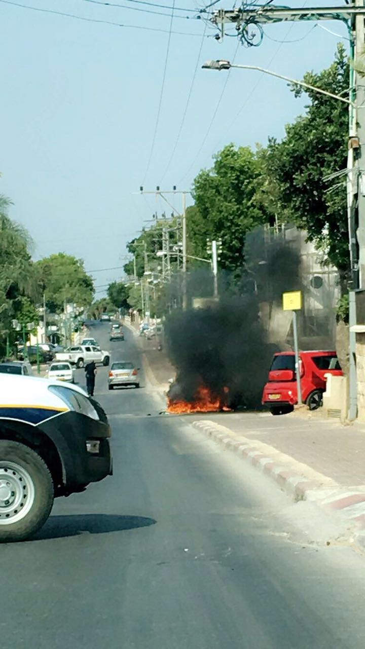 רכב עלה בלהבות ליד הדואר בגן יבנה