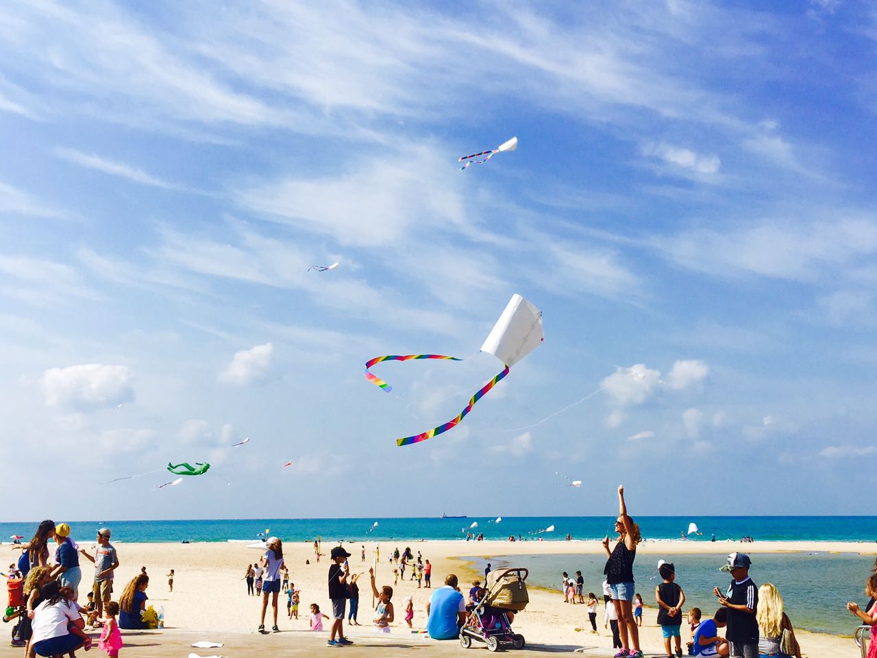 אטרקציה נוספת, על שפך הנחל לים, המשתתפים קיבלו ערכות עפיפונים להכנה והעיפו אותם על רקע הנוף היפיפה של מפגש הנחל הים והנמל.