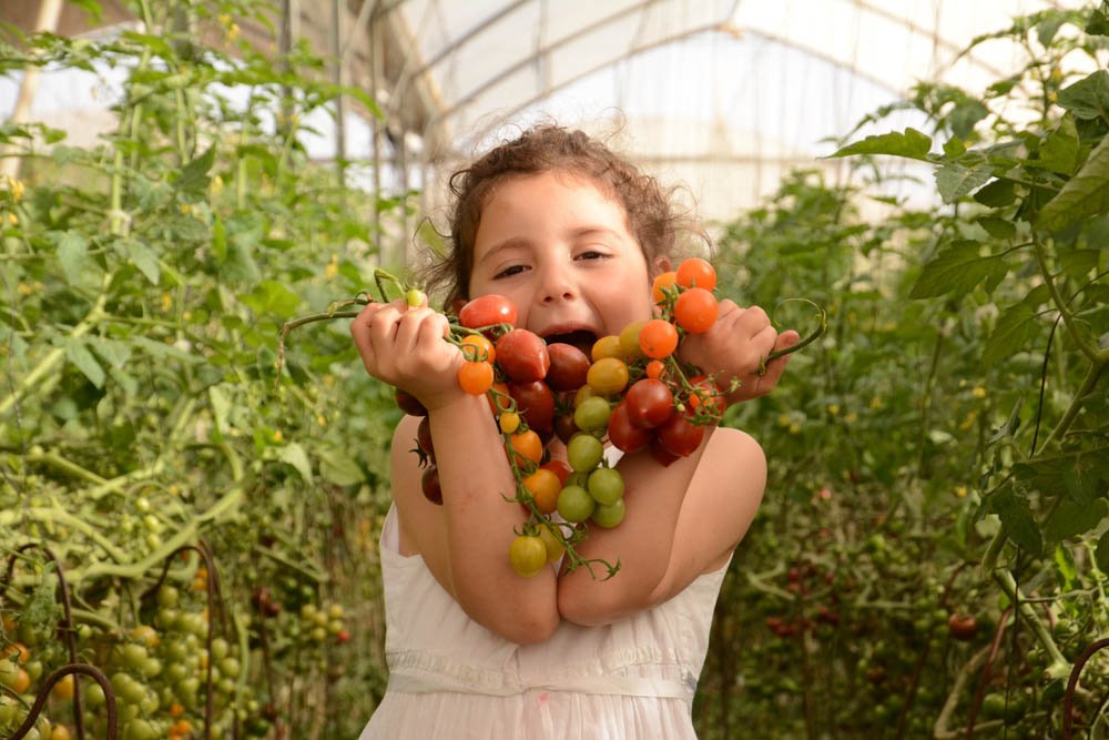 חממת עגבניות שרי צבעוני- איך העגבנייה מטפסת למעלה ומה עושות שם דבורים ענקיות? קטיף עצמי של עגבניות בשלל צבעים ומלפפונים ננסיים.(הקטיף לאכילה במקום).