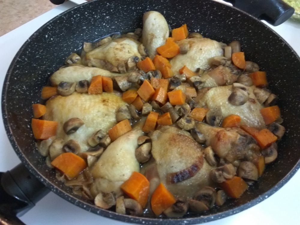 ארוחת צהריים במחבת אחת- מתכון לתבשיל עוף, בצל, בטטה ופטריות- גם טעים וגם בריא!