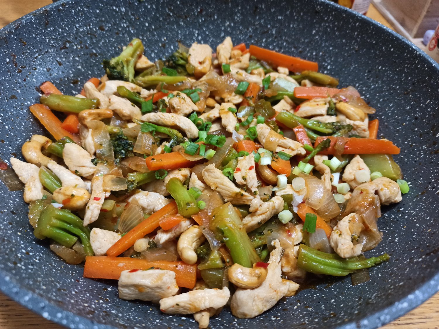 - נוסיף בצל ירוק מעל המוקפץ לפני ההגשה