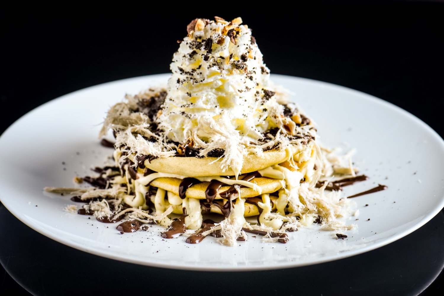 רגע לפני ההגשה יש לשפוך מעל הפנקייק כל אחד לפי טעמו סירופ מייפל או שוקולד , ניתן להוסיף סוכריות, קצפת ועוד.