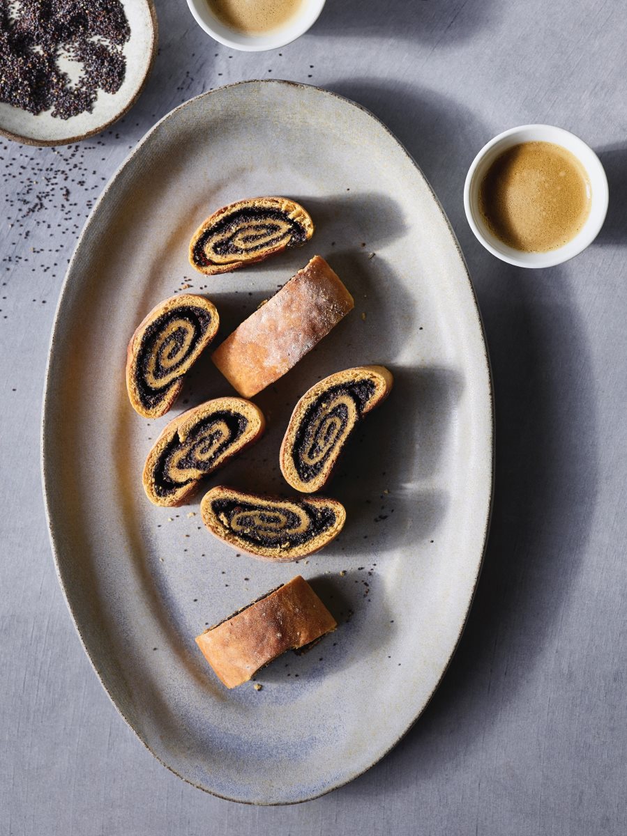 - מורחים את תערובת הפרג בשכבה אחידה ומגלגלים לרולדה.