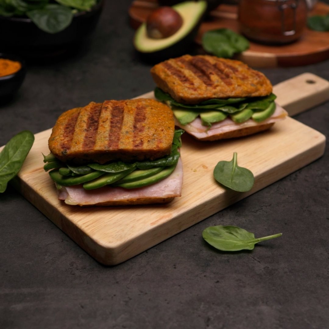 - שימו את חצי הלחם השני מעל וצלו את הכריך בתנור למשך שלוש דקות.