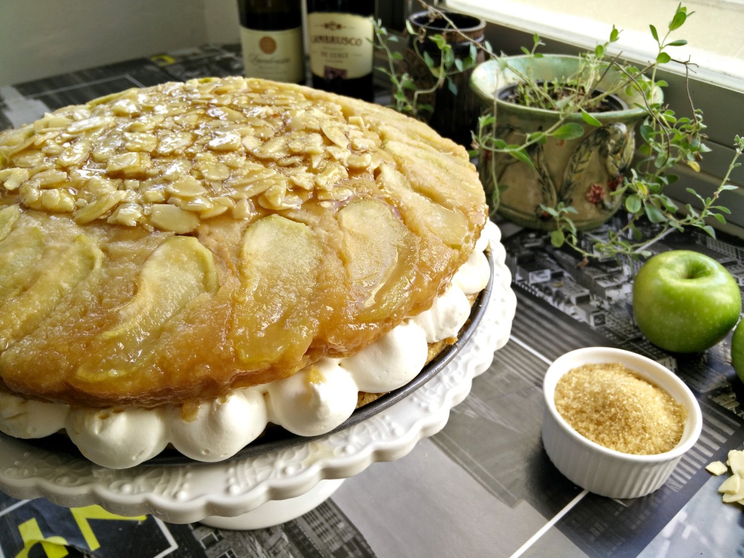 עוגת תפוחים וקרמל עם קרם וניל שקדים