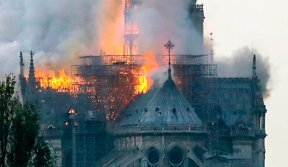 הלהבות הכו בלב ליבה של פריז - קתדרלת נוטרדאם שנבנתה בימי הביניים - שני צריחיה המעוטרים בגרגוילים, הסמל עולמי של צרפת עלו באש כלא היו. אתר המורשת העולמי אותו פוקדים בכל שנה כ-14 מיליון תיירים ומאמינים קתולים נשרף ואיתו נשרפו לבבותיהם של הצרפתים.