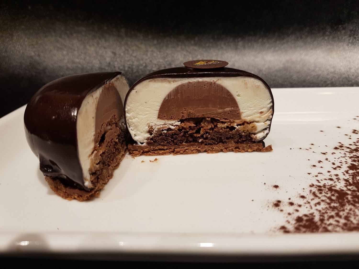 עוגת המוס מסקרפונה בציפוי שוקולד משלבת בתוכה שוקולד ולרונה לבן במילוי פרלין קרמו. העוגה עשירה, רכה ונימוחה בפה, בטעם ביתי ובמרקם אחיד.
